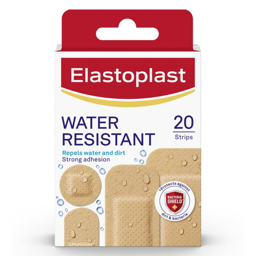 The Elastoplast Aqua Protect Plaster as well as the Antibacterial Plaster are waterproof and will not go off while washing or showering. All Elastoplast Heavy Fabric Plaster as well as the Family Pack Plaster are water resistant.